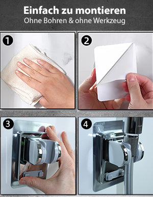 So einfach geht die Montage des Blumbach® Sticky Brausehalters: